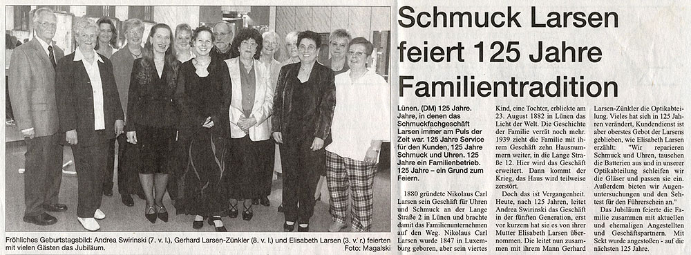 - 2005 feiert das Schmuckfachgeschäft Larsen 125 Jahre Familientradition